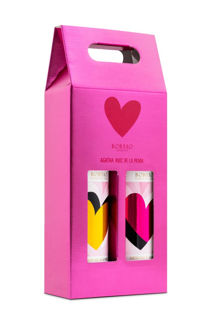 Agatha Ruiz de la Prada y Bodegas Borsao presentan una colaboración innovadora, que fusiona el saber hacer vitivinícola con uno de los universos creativos más reconocibles del diseño español. Fruto de este partnership nacen un vino tinto, un vino blanco y un estuche que los une, todos ellos con un packaging icónico, vibrante y totalmente “agathizado”, reflejo directo del espíritu optimista y rompedor de la diseñadora.